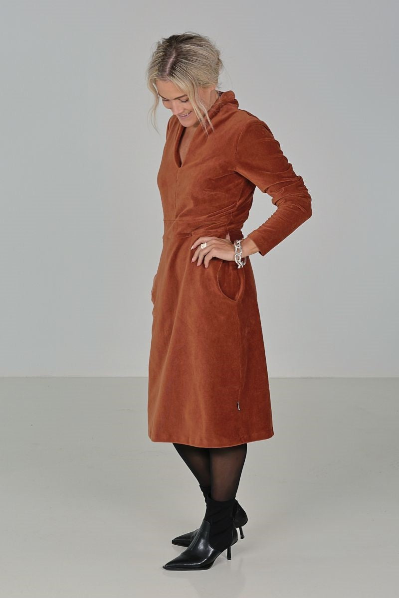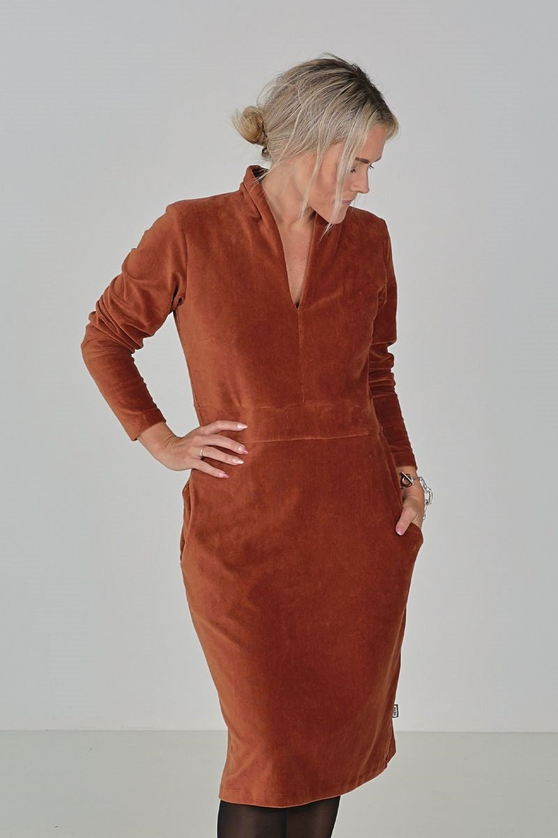 Das Kleid ELSI ist ein klassisches, zeitloses Kleid aus fein gestreiftem Velours. Es ist die perfekte Ergänzung für Ihre Garderobe und wird garantiert zu einem Lieblingsstück im Büro. Elsi hat eine schmeichelhafte Passform mit einem eleganten V-Ausschnitt mit kleinem Kragen. Neben seiner Eleganz bietet das Kleid praktische Details wie lange Ärmel und Seitentaschen.